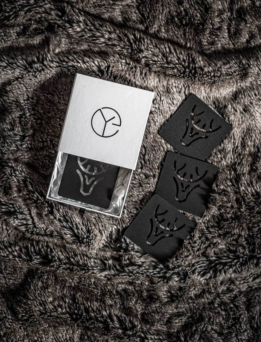 Våra unika glasunderlägg "A Deer" i matt akrylglas med sitt unika Deer mönster.